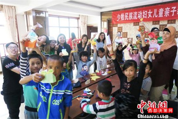 圖為活動小組為城市流動兒童開設(shè)的手工親子課。