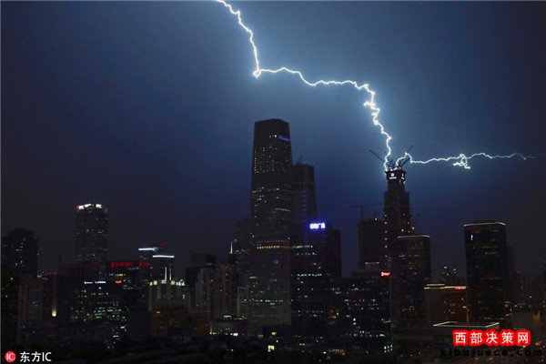 雷雨突如其來(lái)光顧北京城區(qū) 閃電劃破天際