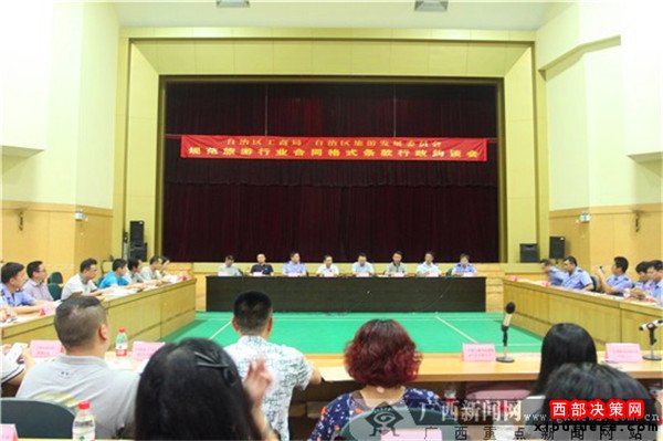 自治區(qū)旅游發(fā)展委員會、南寧市工商局等單位的領導和代表,自治區(qū)格式合同評審委員會的部分專家、全區(qū)30家旅行社的代表等70余人參加了此次約談會,通過召開規(guī)范旅游業(yè)合同格式條款行政約談會議,對一年來專項執(zhí)法檢查中發(fā)現(xiàn)的、普遍存在的旅游業(yè)不公平合同格式條款進行集中點評。通過點評,給予旅游企業(yè)政策性宣傳輔導和告誡,以這種行政指導的形式,引導企業(yè)規(guī)范使用格式合同,推動經營者依法自律經營,切實維護廣大消費者的合法權益。