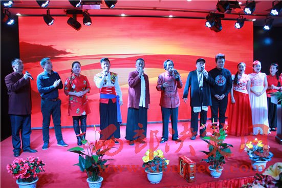 隨后,劉美玉大師兄周金品現(xiàn)場一邊寫書法一邊演唱民歌《圪梁梁》,師弟馮小紅獻(xiàn)上陜北說書,李春茹、馮小紅聯(lián)唱《拜年》,嘉賓演唱《走壺口》等為其新歌發(fā)布會和首場演唱會加油打氣。“男子漢從哪里跌倒就在哪里爬起來,這才是陜北男子漢的氣概”,西部歌王王向榮親自登臺為愛徒劉美玉加油打氣,師徒們還聯(lián)唱了《東方紅》,把發(fā)布會氣氛推向高潮。