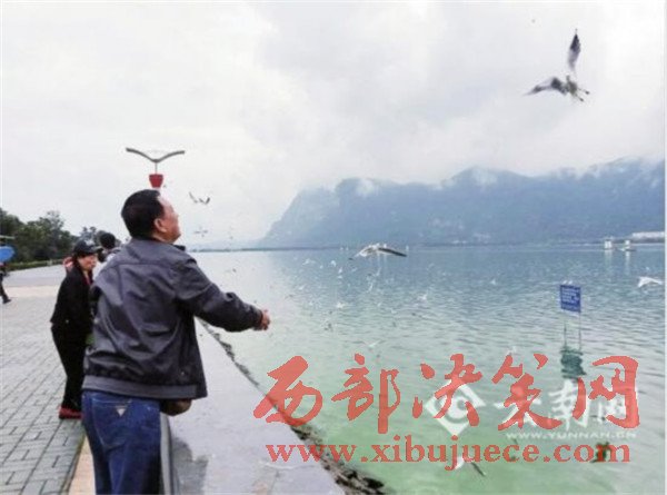 紅嘴鷗回來了!29日中午1時許,盡管天空下著小雨,但在海埂公園內(nèi)卻出現(xiàn)了人鷗相歡的一幕,大概500多只紅嘴鷗到岸邊覓食,數(shù)十位游客用鷗糧、面包等食物正在投喂。當(dāng)紅嘴鷗飛遠一些的時候,賣鷗糧的人便開始張嘴吆喝,沒想到這一吆喝,它們竟又飛回岸邊覓食。