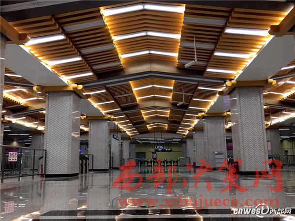 在大雁塔站,記者發(fā)現(xiàn)站廳層屋頂采用頂尖式設計,與大雁塔遙相呼應。