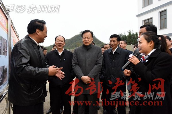 陳敏爾一行認(rèn)真聽取黔西縣綠化鄉(xiāng)馬坎村安置點“兩短”“兩長”的產(chǎn)業(yè)脫貧致富路子的介紹