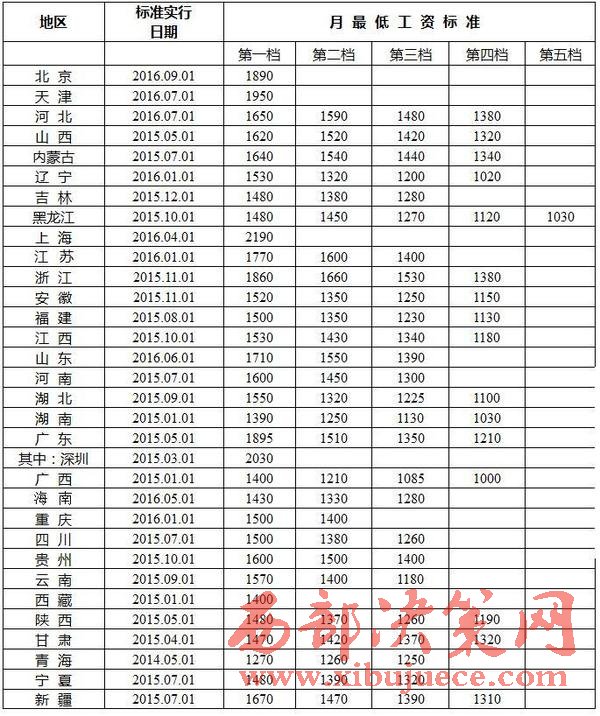 12月13日,人社部勞動關(guān)系司公布《全國各地區(qū)月最低工資標準情況》。