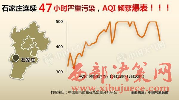 其中,從16日起,河北石家莊更是出現(xiàn)了連續(xù)47小時(shí)的嚴(yán)重污染,AQI指數(shù)頻繁“爆表”。