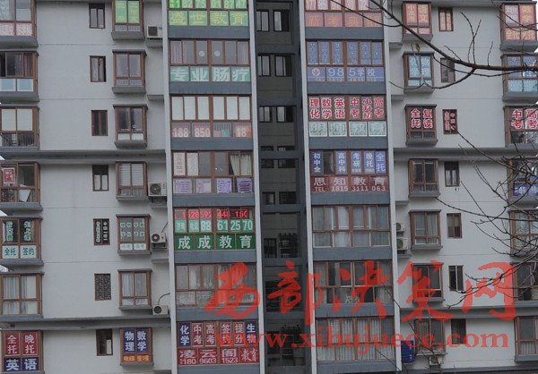 不過,自搬進(jìn)來的第一天起,她感覺置身商業(yè)圈。樓道里,到處都是補習(xí)班的招生廣告。最令彭女士頭痛的是,學(xué)生最多的暑假,一天有五六次被敲門。