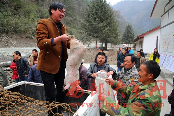 花石村的貧困戶正在領取免費豬仔