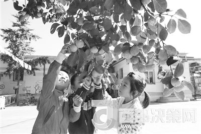 我們幼兒園面積大、歷史久,更可貴的是園中百余棵大樹郁郁蔥蔥。這里春日桃李芬芳,夏日楊柳依依,秋日石榴掛滿枝頭,冬日白雪落在柿子上,一處處皆是風(fēng)景。記得南京師范大學(xué)虞永平教授來我園參觀后,對(duì)冬季掛在樹上紅彤彤的柿子特別感興趣,覺得這是北方特有的景色,便問道:“柿子樹有幾種?。糠謩e什么時(shí)候長果?果實(shí)什么時(shí)間可以摘呢?”說起來慚愧,雖然園中的柿子樹伴隨我從青蔥歲月到不惑年華,我卻不曾認(rèn)真仔細(xì)地觀察過這柿子樹,只是記得后勤老師一直念叨:“柿子樹寓意事事平安,是北方人對(duì)平安、幸福美好日子的一種期待。”