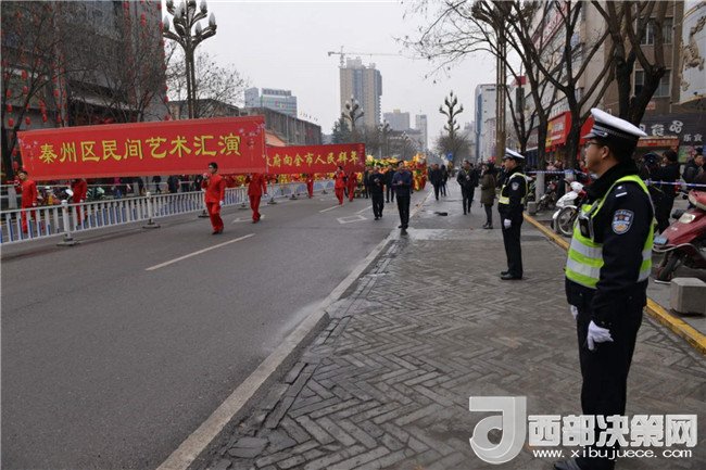 西部決策網(wǎng)-西部大開發(fā)訊 (帥華鋒 通訊員 馬存福 劉冀遠(yuǎn)) 2月27日(農(nóng)歷正月十二)上午,甘肅天水市秦州區(qū)鑼鼓喧天、龍騰獅舞,處處洋溢著歡樂喜慶的節(jié)日氛圍,引得市民紛紛駐足觀看。為保障2018年秦州區(qū)春節(jié)民間藝術(shù)匯演活動順利舉行,天水公安交警部門根據(jù)轄區(qū)實(shí)際,結(jié)合歷年活動保障經(jīng)驗(yàn),科學(xué)制定勤務(wù),提前向社會發(fā)布出行提示信息?;顒赢?dāng)天,全體執(zhí)勤交通民警及協(xié)管員按時到崗到位,對合作巷十字、藉濱橋十字、重新街北口等路段進(jìn)行臨時交通管制,指揮車輛分流繞行,引導(dǎo)過往群眾有序觀看。