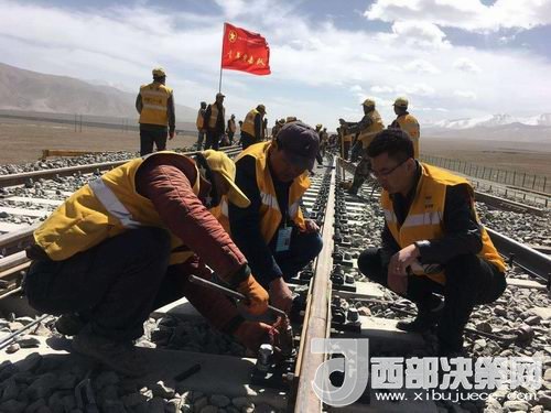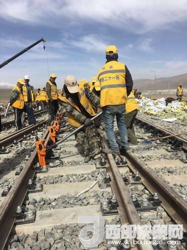 在玉珠峰車站施工現(xiàn)場,600余名工人正在緊張的進行螺紋道釘錨固定、搗道石、安裝枕木連接板等操作。橘黃色的工作服在遠處皚皚雪山的映照下分外醒目和溫暖。中鐵二十一局格拉擴能改造工程指揮部總工李先告訴記者:“這個車站的改造由車站北側增加2條到發(fā)線,在車站的西側增加3股道的專用裝卸線。涉及到路基、橋涵、房建、軌道、通信、信號、電力7個專業(yè)。”