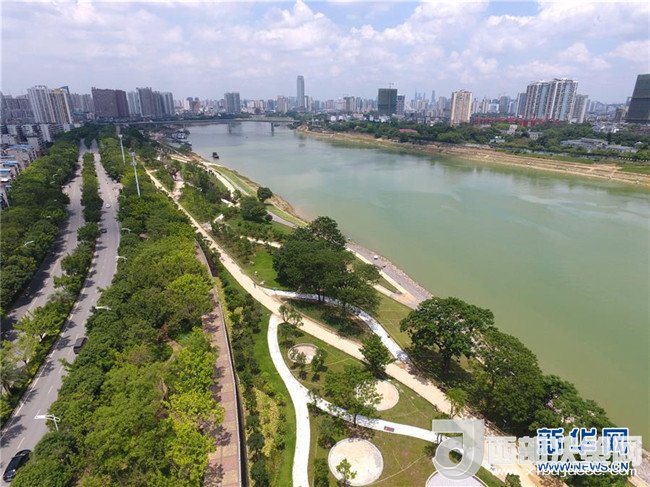 廣西南寧市自2012年起推進全長74公里的邕江綜合整治工程,以堤、路、景建設相結合,圍繞“治水、建城、為民”的主線,開展“百里秀美邕江”建設。截至2018年4月,已建成60公里綠化工程,灘涂景觀帶也在加緊建設。整治工程全面建成后,邕江兩岸景觀將舊貌換新顏,也將成為當地百姓的休閑新去處。新華社記者 周華 攝
