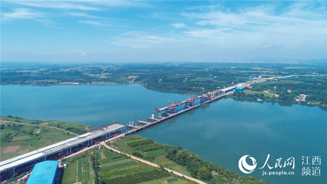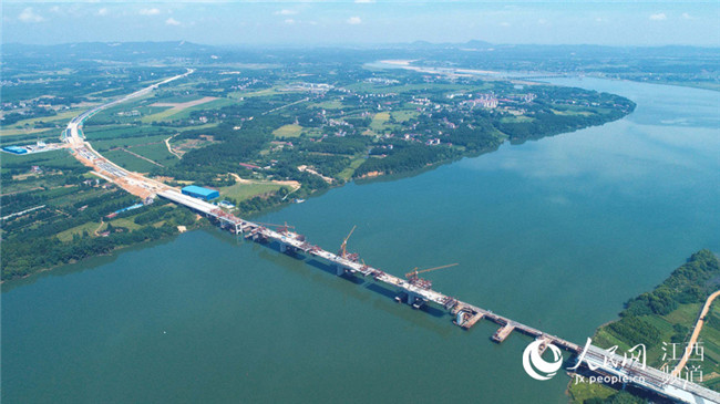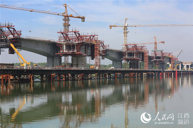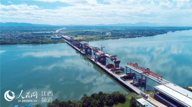 7月17日電17日上午,廣吉高速公路江西泰和北贛江特大橋正在進行掛籃施工作業(yè),在藍天白云、綠水青山襯托下,顯得格外美麗壯觀。泰和北贛江特大橋位于江西省泰和縣萬合鎮(zhèn),是廣吉高速公路唯一一座特大橋,是全線控制性工程,大橋總長1075米,總投資近1.5億元。大橋自2016年11月開工建設(shè)以來,工程進展順利,預計于今年底前建成合龍,為廣吉高速2019年1月如期建成通車奠定基礎(chǔ)。