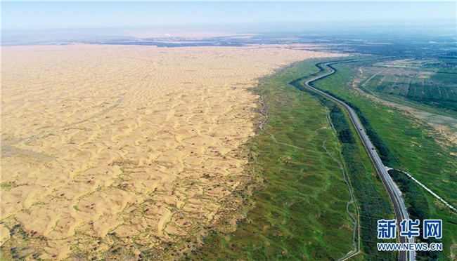 黃河流經寧夏中衛(wèi)市騰格里沙漠邊緣(6月26日無人機拍攝)。 寧夏,地處中國西北腹地。這里的大山、大河、草原、沙漠、湖泊,猶如一幅幅美妙畫卷,讓人流連忘返。 新華社記者 王鵬 攝