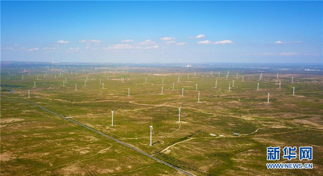 寧夏吳忠市太陽山風電場(8月24日無人機拍攝)。 寧夏,地處中國西北腹地。這里的大山、大河、草原、沙漠、湖泊,猶如一幅幅美妙畫卷,讓人流連忘返。 新華社記者 郭緒雷 攝