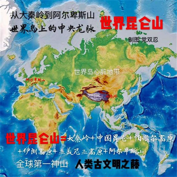 按照中國(guó)傳統(tǒng)的龍脈理論,“亞歐大陸的脊梁”也是“世界島”中央龍脈所在。由于人類(lèi)古文明,包括古華夏、古印度、古波斯、古巴比倫,古希臘,皆源自“亞歐大陸脊梁”,所以也可稱(chēng)其為“世界昆侖山”。著名的“絲稠之路”,也是從中國(guó)大秦嶺到歐洲阿爾卑斯山之路,也可稱(chēng)之為“世界昆侖山之路”。過(guò)去,德國(guó)人首先“發(fā)現(xiàn)”了古老的“絲綢之路”。進(jìn)入21世紀(jì),英國(guó)人又率先以“絲綢之路”的視角,重新著述了“一部全新的人類(lèi)史”。今天,中國(guó)人以“亞歐大陸的脊梁”為視野,將“世界島”連為一體,著述“一帶一路”,著述“大秦嶺到阿爾卑斯山之路”,著述“世界昆侖山之路”,也算是一個(gè)世界“地理新發(fā)現(xiàn)”。