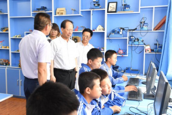 石泰峰十分關(guān)心農(nóng)村學校運用“互聯(lián)網(wǎng)+”破解師資力量和優(yōu)質(zhì)教育資源短缺問題。在西夏區(qū)鎮(zhèn)北堡鎮(zhèn)華西中學和賀蘭縣洪廣鎮(zhèn)金山小學,石泰峰走進科普活動室、錄播室和教師辦公室,了解視頻遠程教學和在線互動課堂開展情況。他說,“互聯(lián)網(wǎng)+教育”是促進教育公平的有效手段,要通過互聯(lián)網(wǎng)技術(shù),一方面把區(qū)內(nèi)優(yōu)質(zhì)教育資源輸送到偏遠地區(qū)、農(nóng)村學校,一方面引進發(fā)達地區(qū)先進教育理念、教學技術(shù)、數(shù)字資源為我所用,提升教育教學水平。