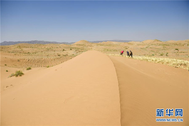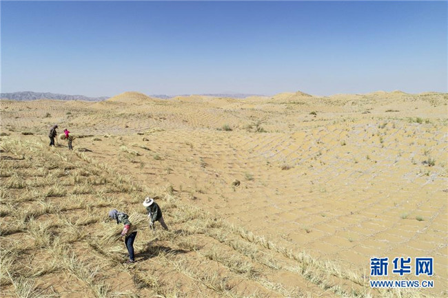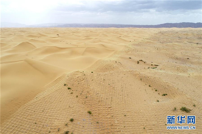 寧夏中衛(wèi)市位于騰格里沙漠南緣,在長(zhǎng)期抵抗沙漠化侵襲的實(shí)踐和探索中,一套“先固后治,固阻結(jié)合”的防沙治沙新模式在這里應(yīng)用。人們利用草方格固沙,在扎好的草方格中播撒草種,形成植物沙障。據(jù)了解,截至2018年底中衛(wèi)市已完成沙區(qū)治理147萬(wàn)畝。新華社記者馮開華攝