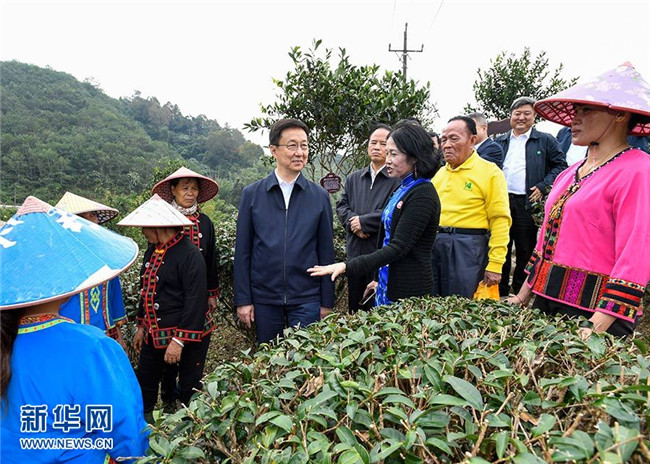 11月9日至11日,中共中央政治局常委、國(guó)務(wù)院副總理韓正在海南調(diào)研。圖為11月10日,韓正在五指山椰仙有機(jī)茶生態(tài)觀(guān)光園,了解高山雨林有機(jī)茶種植等特色產(chǎn)業(yè)培育、病蟲(chóng)害物理防治、種植產(chǎn)業(yè)和旅游產(chǎn)業(yè)融合發(fā)展等情況,與正在茶園工作的當(dāng)?shù)剞r(nóng)民和貧困戶(hù)交流。 新華社記者 高潔 攝