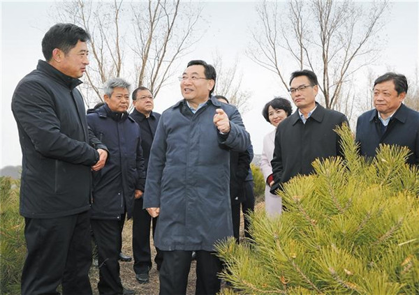 十一月二十日,省委書記胡和平到延安市吳起縣白豹鎮(zhèn)郭克朗村實(shí)地察看退耕還林情況。記者宋紅梅攝
