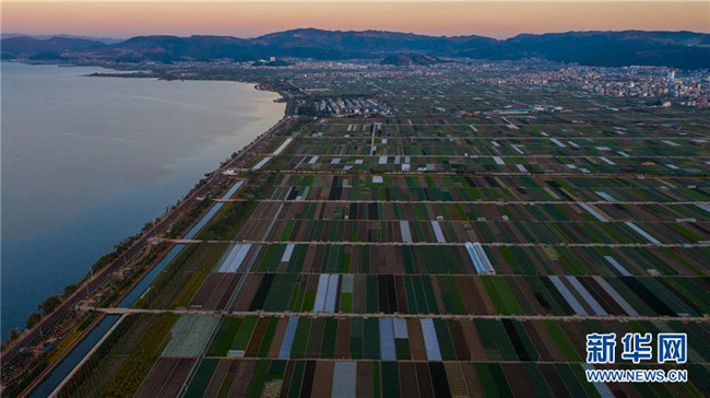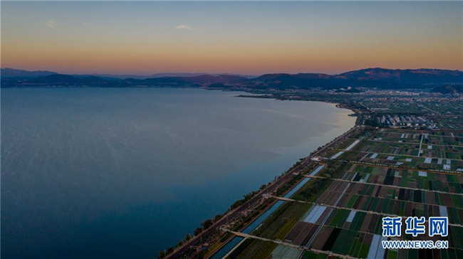 這是云南省玉溪市通??h的田園風(fēng)光(11月23日無(wú)人機(jī)拍攝)。初冬時(shí)節(jié),云南省玉溪市通??h風(fēng)景秀麗,山巒、湖水與農(nóng)田組成了一幅美麗的田園詩(shī)畫卷。新華社記者胡超攝