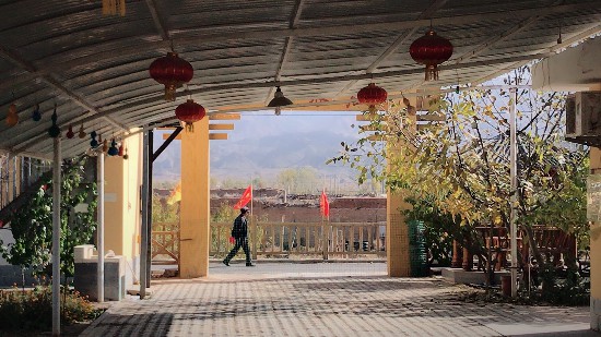 走進(jìn)沙坡頭新村童家園子,黃墻紅瓦的農(nóng)宅,干凈整潔的道路,各種果樹掩映中,一座座小院各有特色。因?yàn)樘鞖廪D(zhuǎn)涼,過(guò)了旅游季,大部分的農(nóng)家小院已經(jīng)歇業(yè),只有兩三家還在開門營(yíng)業(yè)。