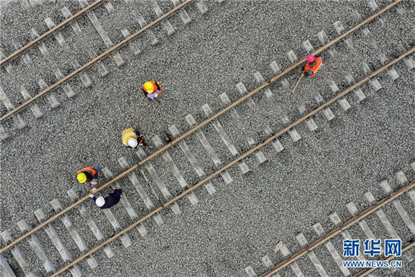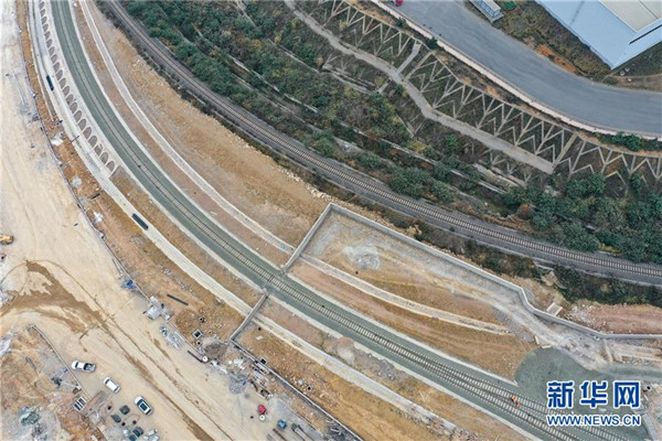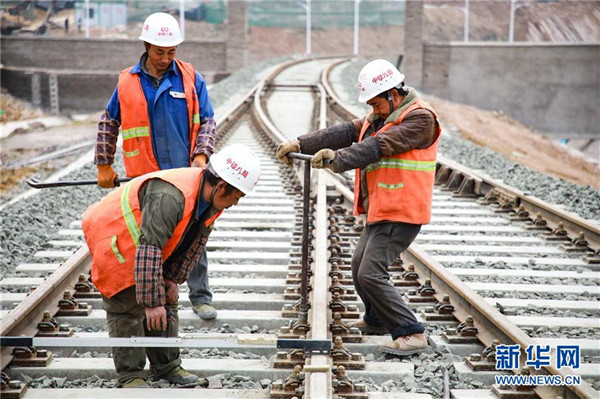 12月17日,中鐵八局建設者在改貌鐵路口岸施工。由中鐵八局承建的貴州省首個鐵路口岸——貴陽改貌鐵路口岸即將全面進入竣工驗收階段。據悉,貴陽改貌鐵路口岸為一級開放口岸,建成投運后將成為中歐班列的場站,年貨運吞吐量將達120萬噸,將進一步促進貴州省對接“一帶一路”和“國際陸海貿易新通道”,為貴州建設內陸開放型經濟試驗區(qū)提供有力支撐。新華社記者劉續(xù)攝