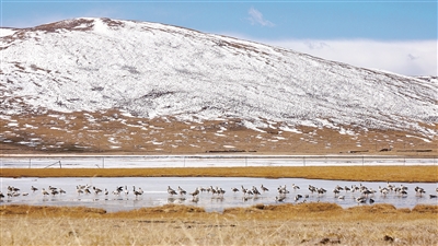 隆寶是青海省第一個(gè)國(guó)家級(jí)自然保護(hù)區(qū)。1984年建站之初只有22只黑頸鶴,如今已經(jīng)有超過216只在這里棲息。普布說,隆寶保護(hù)區(qū)的濕地東西長(zhǎng)23千米,南北寬5千米,平均海拔4100多米,海拔高、地域?qū)拸V、水汽環(huán)境適宜,因此成為很多水鳥遷徙途中的驛站。