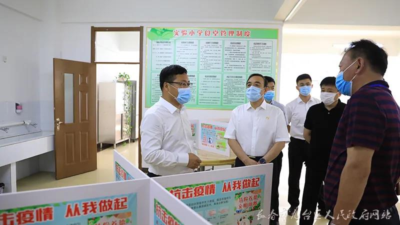 6月16日,長(zhǎng)春市九臺(tái)區(qū)區(qū)長(zhǎng)宋長(zhǎng)者帶領(lǐng)區(qū)政府辦、教育局、衛(wèi)健局、市場(chǎng)監(jiān)督管理局等單位負(fù)責(zé)同志深入到區(qū)實(shí)驗(yàn)小學(xué),實(shí)地調(diào)研小學(xué)開學(xué)疫情防控工作。