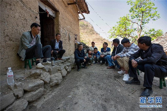 搬遷當天,掛鉤幫扶干部和鄉(xiāng)鄰們上門道賀,掛鉤幫扶干部希望李本艷的父母——李守朝和陶大煥,能聽從安排、努力工作、勤勞致富,給孩子一個幸福的未來(攝于4月2日)。新華網(wǎng)發(fā)(鮑禹 攝)