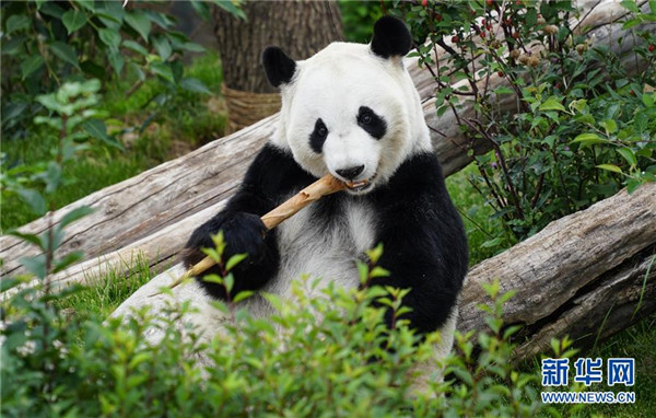 8月16日,大熊貓“和興”在西寧熊貓館內(nèi)吃竹子。青海省西寧熊貓館的四只大熊貓已經(jīng)在西寧生活了一年多,在工作人員的悉心照顧下,已經(jīng)適應(yīng)了青藏高原的氣候,身體各項(xiàng)指標(biāo)正常。新華社記者薛玉斌攝