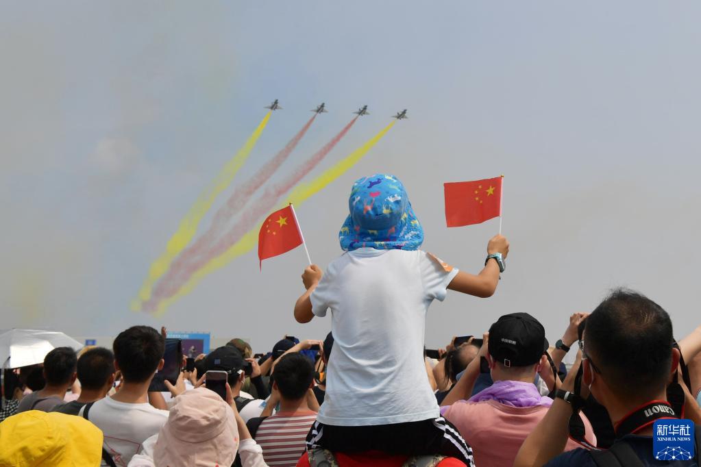 10月1日,中國(guó)空軍八一飛行表演隊(duì)在第十三屆中國(guó)國(guó)際航空航天博覽會(huì)上進(jìn)行飛行表演。新華社發(fā)(余紅春 攝)