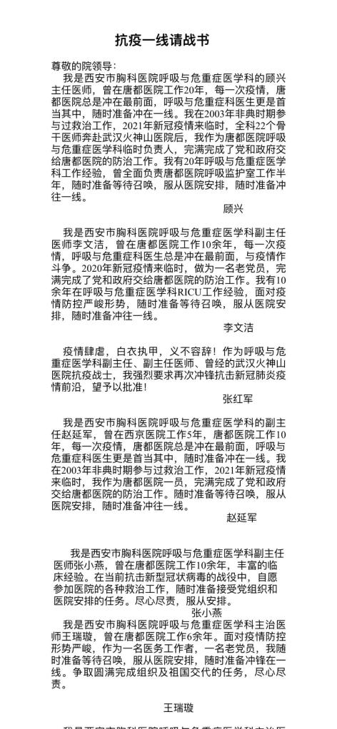 西安市胸科醫(yī)院多名醫(yī)護(hù)人員