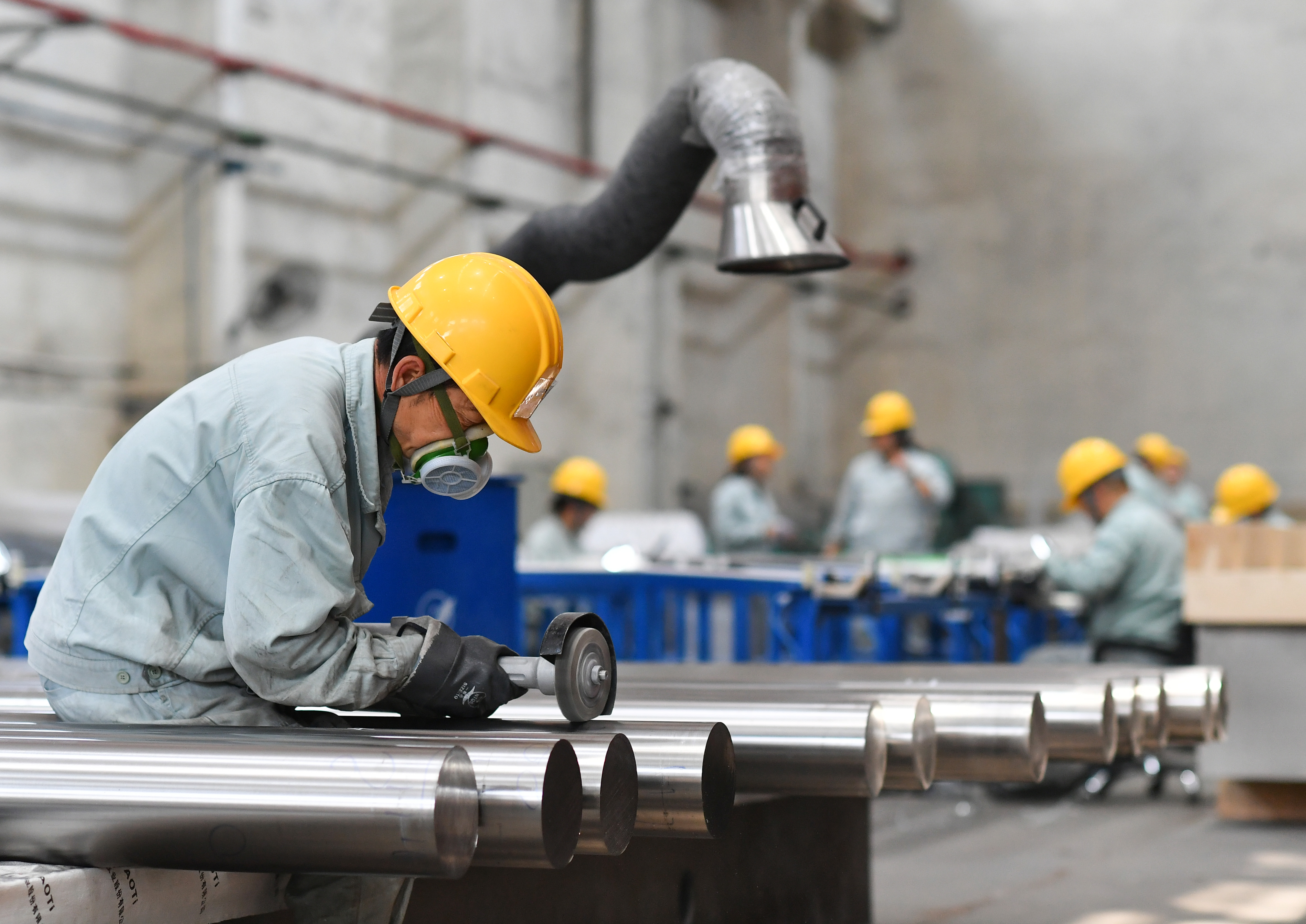 5月19日,工人在中石油寶雞石油機械有限責任公司生產(chǎn)車間工作。新華社記者 張博文 攝