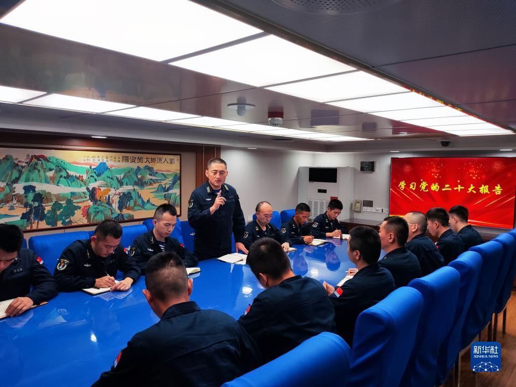 中共中央總書記、國(guó)家主席、中央軍委主席習(xí)近平24日下午出席軍隊(duì)領(lǐng)導(dǎo)干部會(huì)議時(shí)發(fā)表的重要講話,在解放軍和武警部隊(duì)引起強(qiáng)烈反響。這是東部戰(zhàn)區(qū)海軍護(hù)衛(wèi)艦支隊(duì)迅速組織官兵學(xué)習(xí)習(xí)主席重要講話(10月25日攝)。新華社發(fā)(劉祎瑋 攝)
