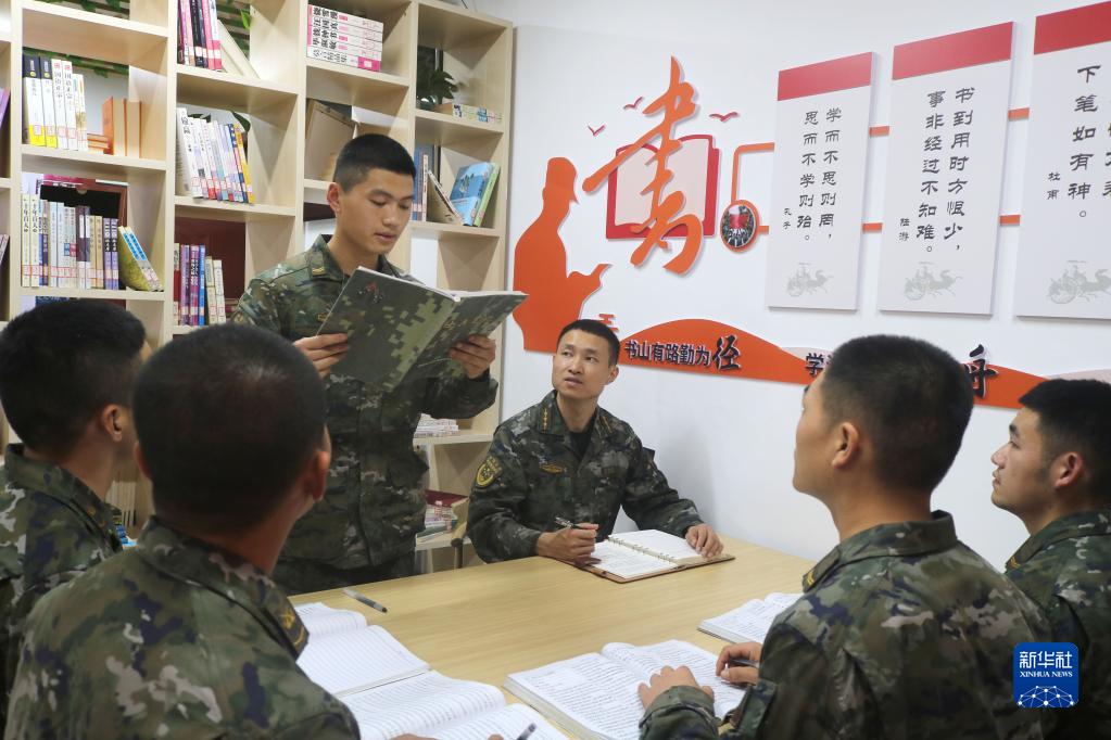 中共中央總書記、國(guó)家主席、中央軍委主席習(xí)近平24日下午出席軍隊(duì)領(lǐng)導(dǎo)干部會(huì)議時(shí)發(fā)表的重要講話,在解放軍和武警部隊(duì)引起強(qiáng)烈反響。這是南部戰(zhàn)區(qū)陸軍第74集團(tuán)軍某合成旅“大渡河連”組織官兵認(rèn)真學(xué)習(xí)習(xí)主席重要講話(10月25日攝)。新華社發(fā)(薛健 攝)
