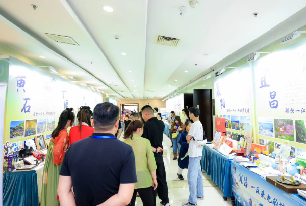 2023“極目楚天·鐘情湖北”文旅推介會(huì)現(xiàn)場(chǎng)展臺(tái)。