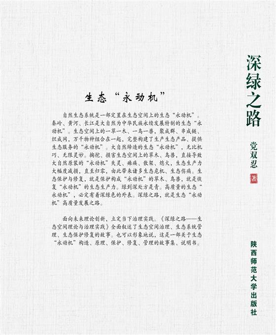 面向未來理論創(chuàng)新,立定當下治理實踐?!渡罹G之路——生態(tài)空間理論與治理實踐》全面敘述了生態(tài)空間治理、生態(tài)系統(tǒng)管理、生態(tài)保護修復的故事。也可以形象地說,這是一部關于生態(tài)“永動機”構造、原理、保護、修復、管理的故事集、說明書。