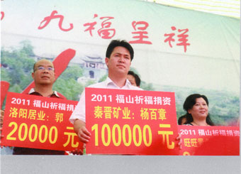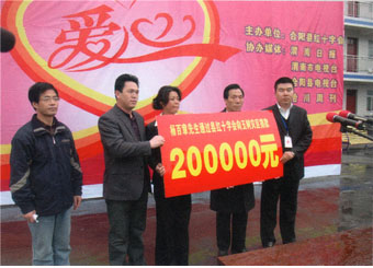 楊百章通過合陽縣紅十字會(huì)向玉樹災(zāi)區(qū)捐款20萬元